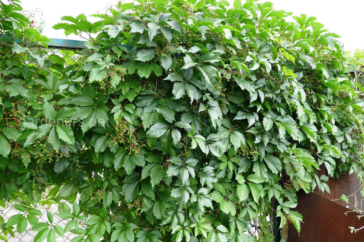 Это многолетнее, не прихотливое, лианоподобное, разветвленное, листопадное растение, способное соорудить за несколько лет качественную живую изгородь, через которую не пролетит ни птица, ни ветер, ни пыль. Растение цветет совсем не приметными цветочками, которые самоопыляясь, завязывают плоды. Ягоды дикого винограда очень любят птицы и с удовольствием склевывают черные горошины. Дикий или «девичий» виноград является очень мощным растением с крупной корневой системой, хорошо и быстро разрастается, скрывая под массой ветвей все, что встречается на пути. Листья у растения крупные и в зависимости от сезона меняют свою окраску. Весной растение с ярко-салатной листвой, осенью листья приобретают багряный окрас. На зиму дикий виноград сбрасывает листву, а весной наращивает вновь. Растение совсем не требует ухода, хорошо переносит засуху и морозы. Без прореживания зарослей может скрыть под своей массой любые постройки. Высаживают дикий виноград у заборов и беседок. Летняя прохлада и защита от сквозняка и пыли в таком сооружении – обеспечена.