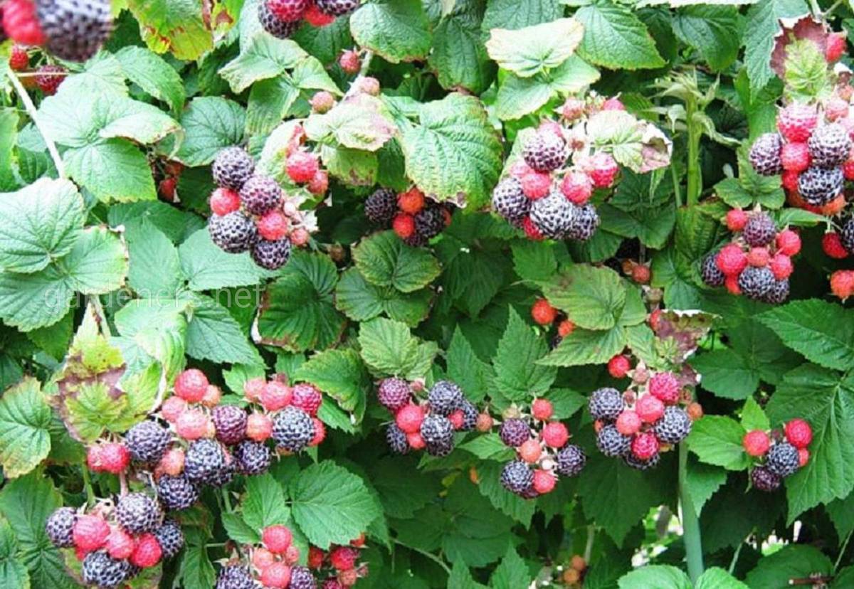 Это американская черная малина, гибрид ежевики обычной. Вьющиеся плети и плоды кумберленда часто путают с ежевикой, ведь по внешнему виду, силе роста кустарника, длине побегов, цвету и размеру ягод, черная малина действительно схожа с ежевикой. Но вкусовые нотки всё же характерны для малиновых ягод. Плоды черной малины при достижении технической спелости покрываются белым налетом. Ветви растения дугообразной формы, темно-зеленые и усеянные множественными шипами. Растение не переносит засуху, нуждается в регулярном увлажнении почвы, осеней обрезке. Высаживают кумберленд у деревянных заборов, которые служат опорой растению.