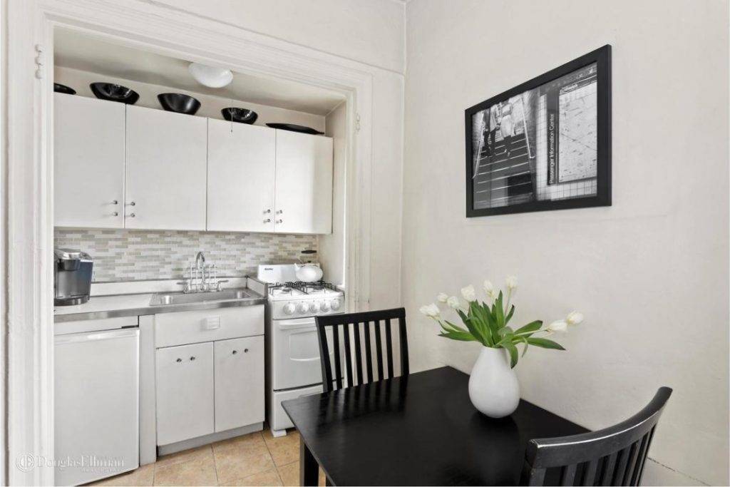 А если вы найдете в гостиной небольшой диванчик или маленький столик, которые можно будет поместить на “новую” кухню, то будет просто замечательно.
