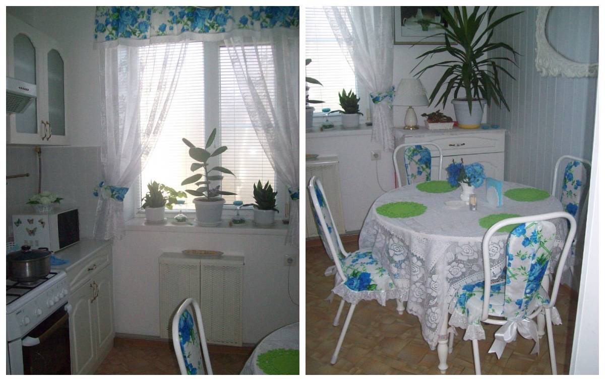 Еще один способ, как обновить кухню своими руками без ремонта – это новый текстиль, в том числе шторы. Выбор штор зависит от следующих параметров: