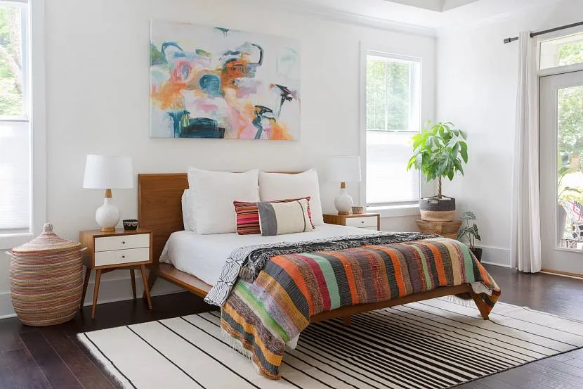 Времена изменились. Сейчас дизайн спальни выглядит куда интереснее и ярче, а все благодаря модному стилю smart casual, который даже и не предусматривает использование покрывала.