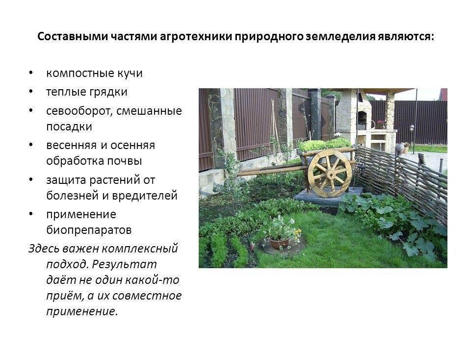- применение на садовом участке исключительно органических удобрений, в том числе компоста, навоза, перегноя, сидератов, а также микробиологических разработок;