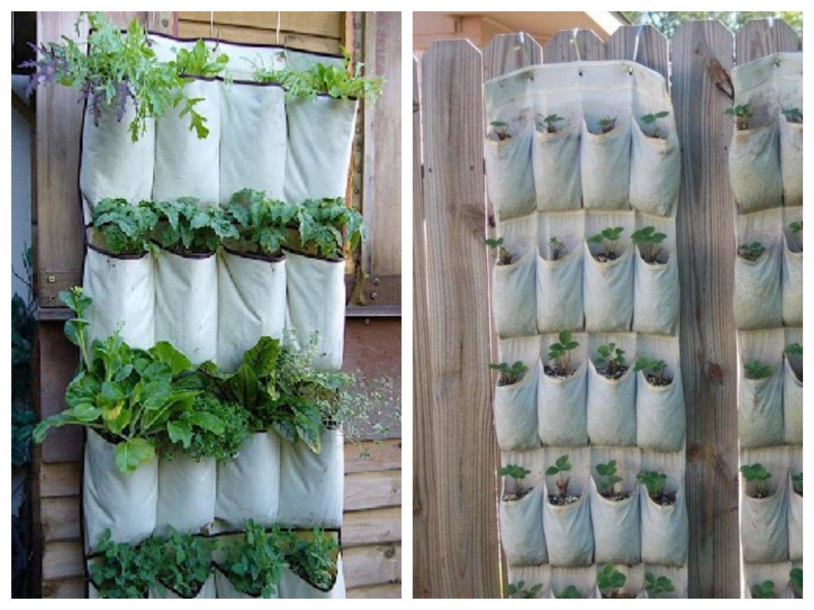Возьмите старый органайзер для мелочи, расчесок или прочих бытовых принадлежностей, вложите в кармашки пленку, грунт и удобрение, пришейте прочные петельки, чтобы его можно было вешать на любой стене или заборе, и все – ваша миниатюрная грядка готова!