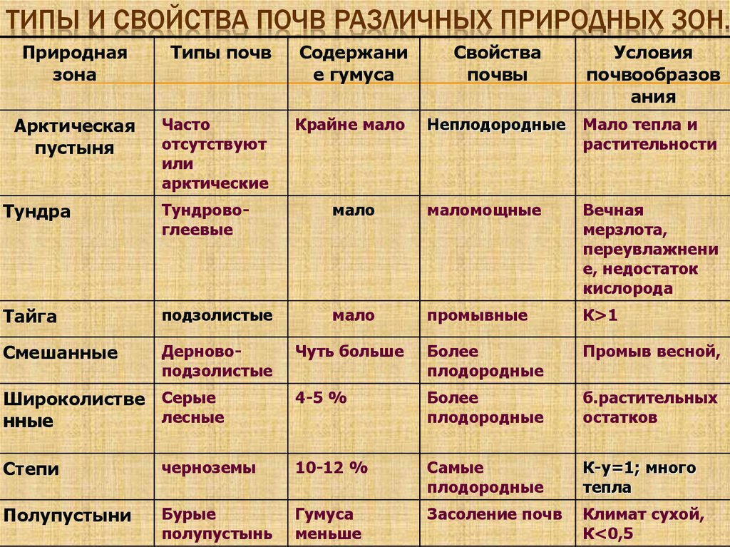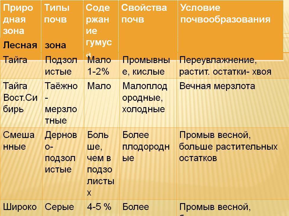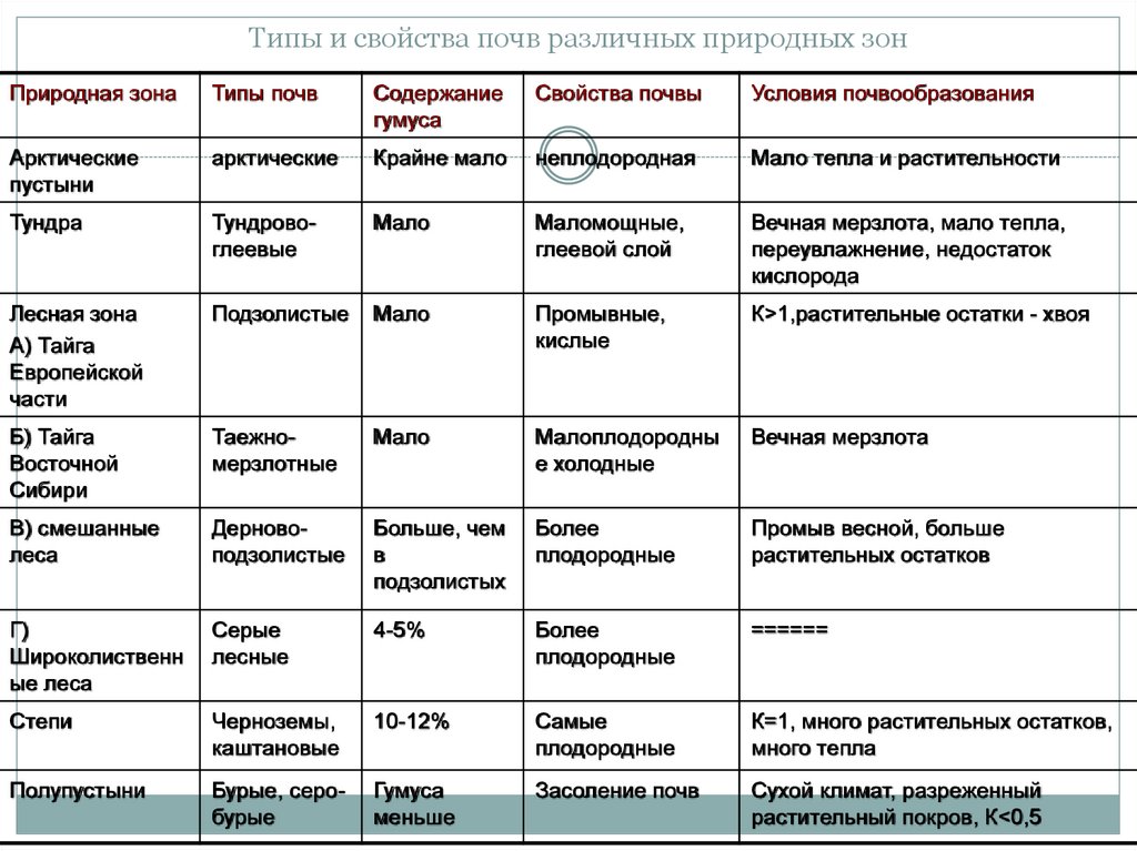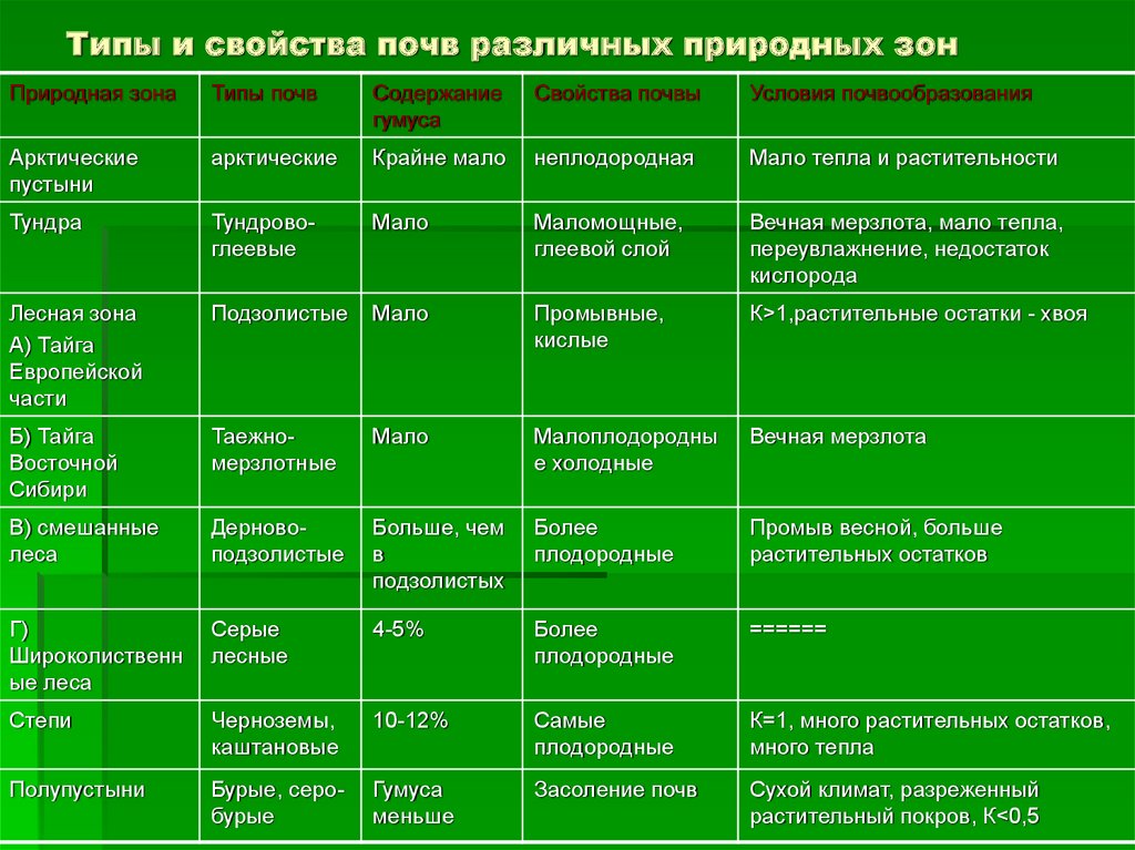 Особенности почв и растительность разных природных зон