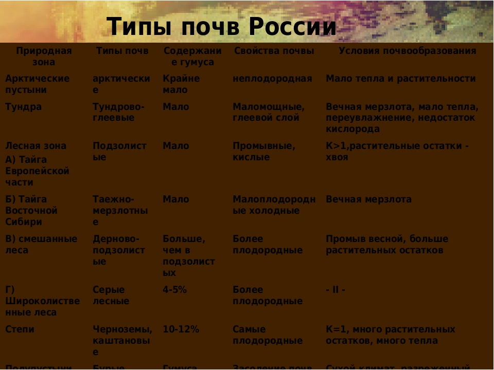 Виды почв и их характеристика по органическому составу