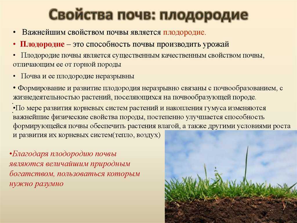 В каждом регионе России встречается свой тип почв, сильно отличающихся своим составом. На их свойства влияют климат, флора, фауна, рельеф. Плодородный слой и содержание полезных элементов в почве сильно отличаются от региона к региону.