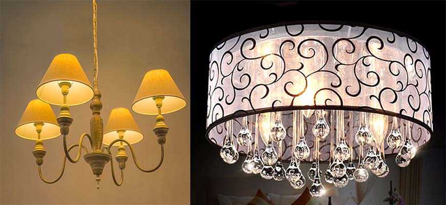 Классические и люстры с абажуром гармонично вписываются в большинство интерьеров, однако особое внимание уделите цвету плафона и его форме.