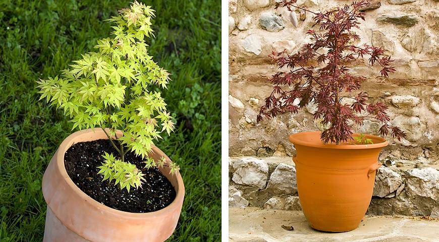 На зиму клены в контейнерах нужно убрать в прохладное не промерзающее помещение (подвал, холодная оранжерея). По весне приучайте растения к солнцу постепенно, во избежание ожогов.
