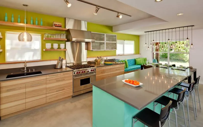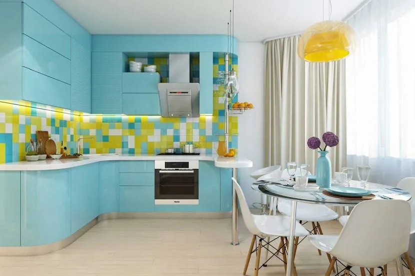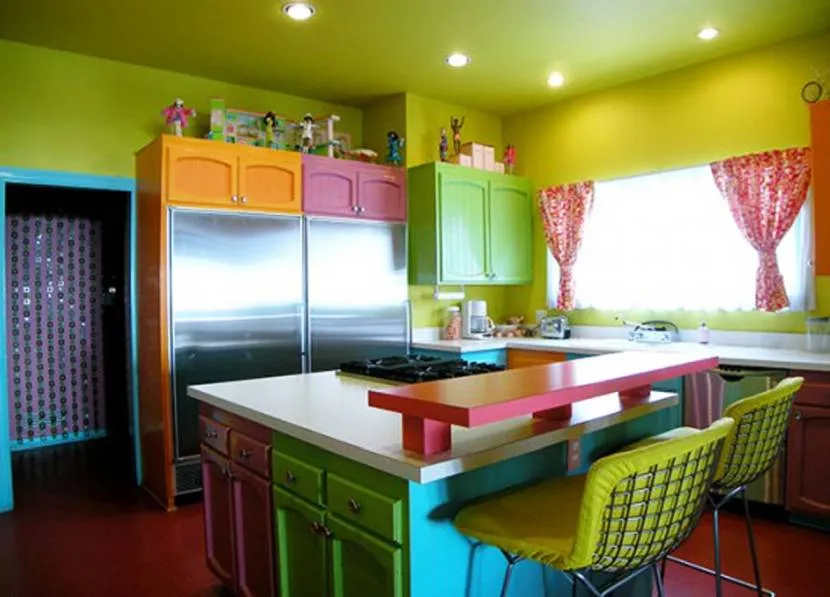 Яркие цвета на кухнеИсточник vseodetyah.com