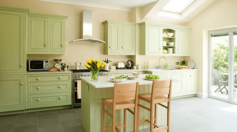 Оливковая расцветка кухонной мебелиИсточник vestnikao.ru