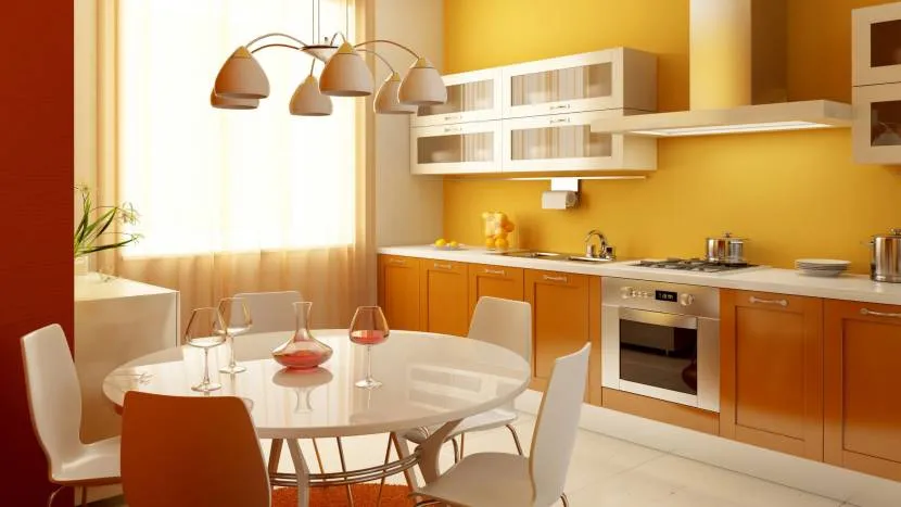 Оранжевые оттенки в оформлении кухниИсточник kuhniclub.ru