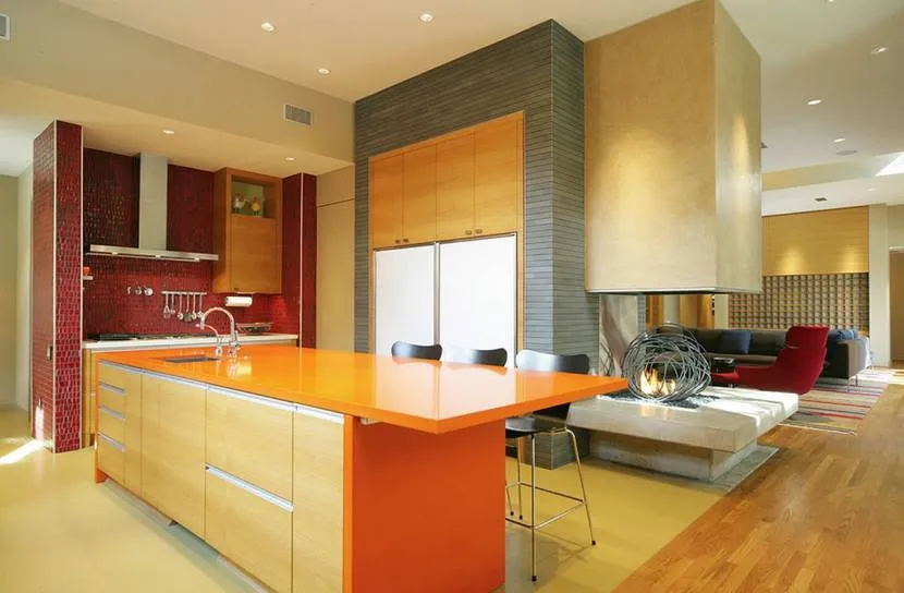 Темно-оранжевые оттенки в оформлении кухниИсточник almode.ru