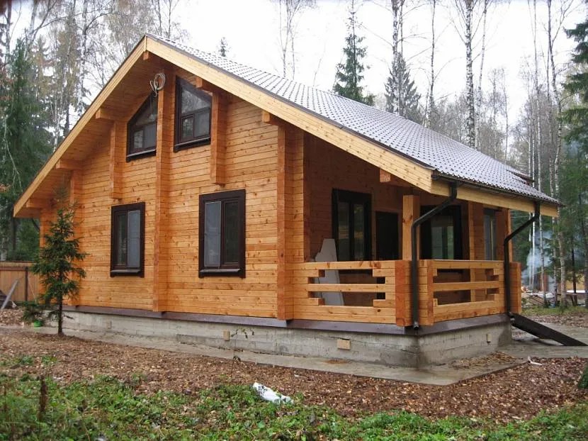 Постройки из клееного бруса внешне выглядят привлекательно. Материал позволяет создавать объекты с достойным экстерьером без внушительных денежных затрат.