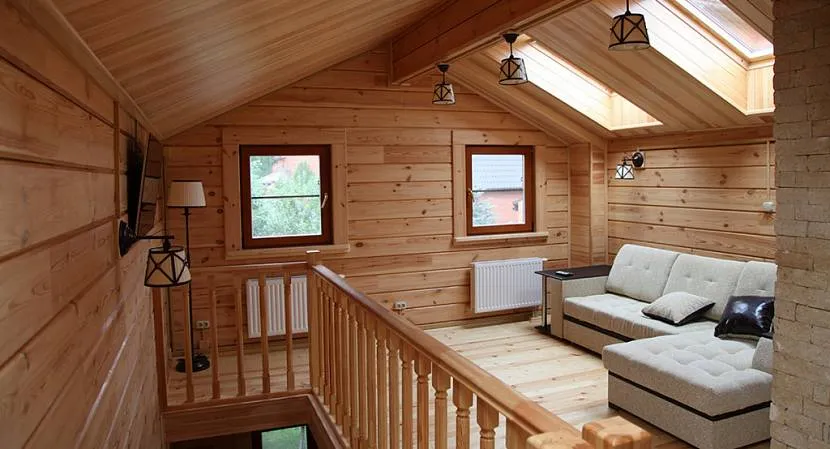 Такая сауна построена из ясеня, березы либо сосны. Как правило, помещение здесь очень просторное. Это сделано для того, чтобы можно было полноценно отдохнуть: посмотреть телевизор или же послушать музыку, спеть в караоке, поиграть в настольные игры.