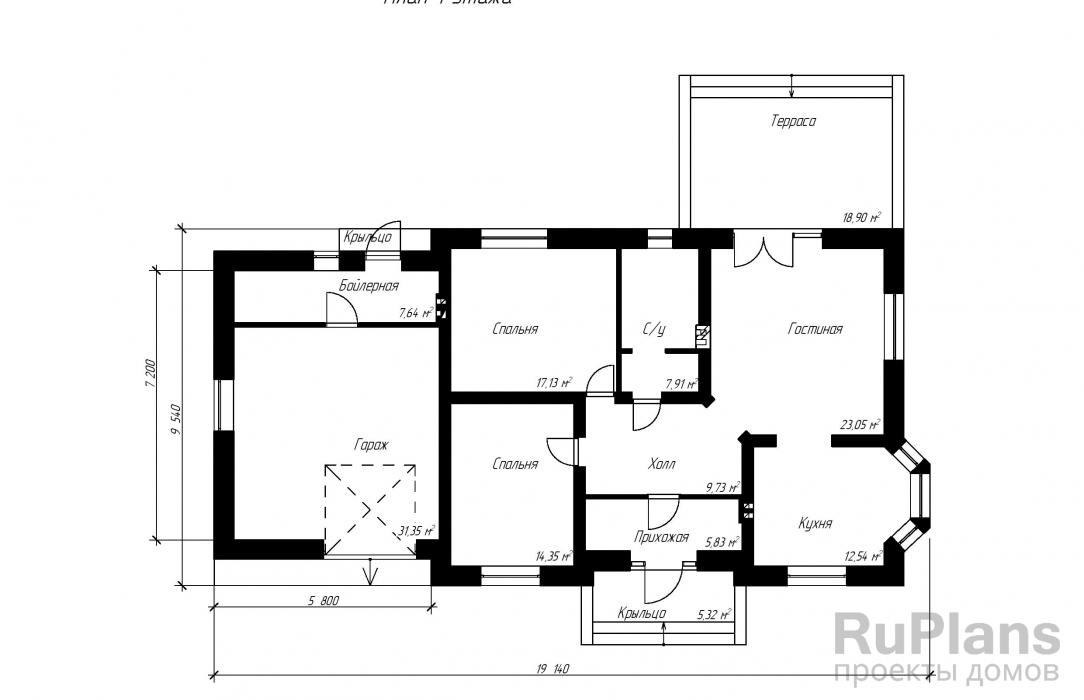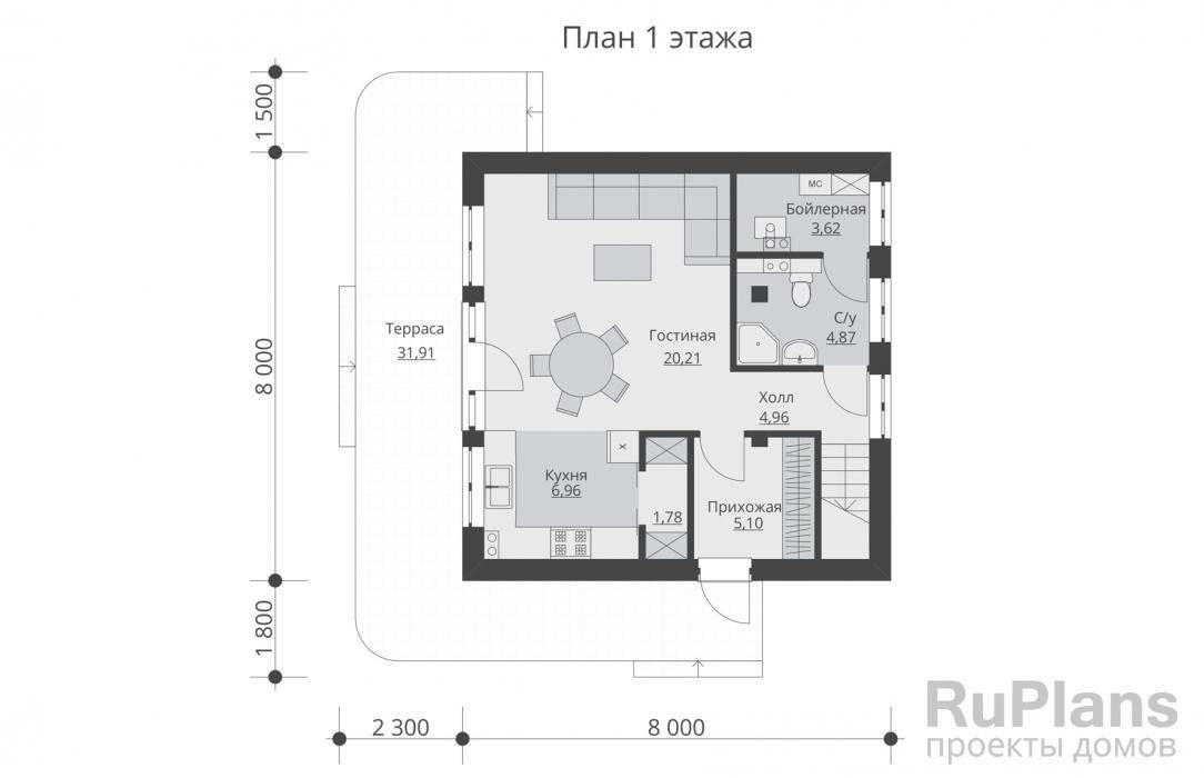Общий вид первого этажа — площадь 35,8 квадратных метров