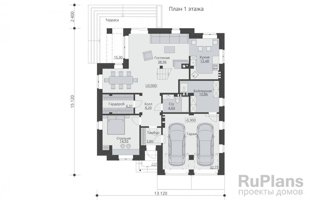 - Включение гаража в план здания дает жильцам возможность переходить в дом, минуя улицу.