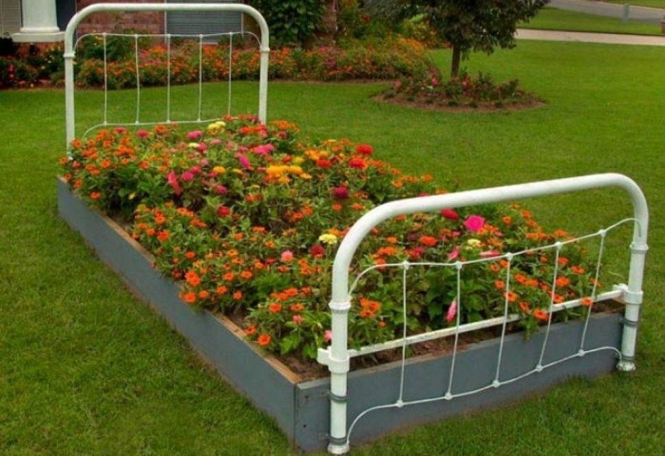 Клумба будет смотреться еще более выигрышно, если дополнить ее всевозможным садовым декором. В ход могут пойти даже подручные средства, включая покрышки, камни, пни, старые вазы, зеркала.