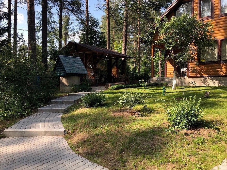 - мощëная тропинка, которая тянется от входа в коттедж до парковой зоны;