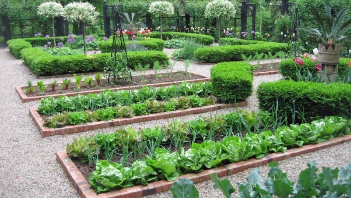 А эта композиция из овощных культур, обрамленная садовыми дорожками может служить интересным местом для прогулок. Идея для дачного участка.