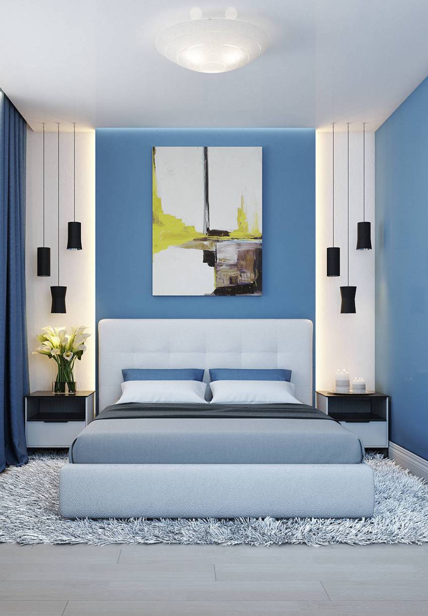 То, как будет выглядеть спальня в голубом цвете, зависит от правильно выбранных деталей