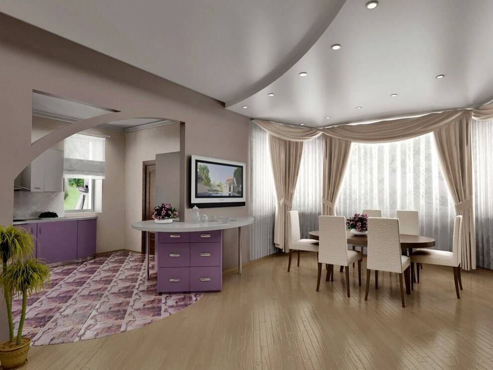 - Возможность зонирования комнаты. Дизайнеры все чаще для этого применяют подвесной потолок с точечной подсветкой, тогда как ширмы и различные виды перегородок отошли на второй план;