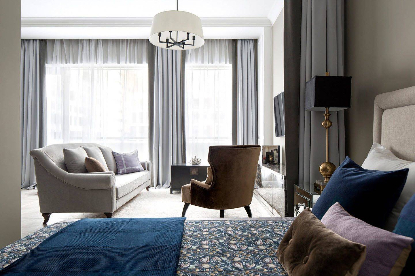 Правильное зонирование спальни-гостиной