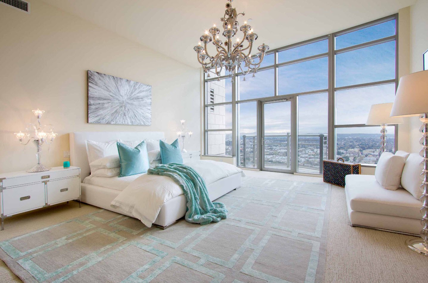 При такой установке кровати вам будет не хватать в спальной зоне естественного освещения. В этом случае недостаток компенсируется точечными светильниками или настенными бра.