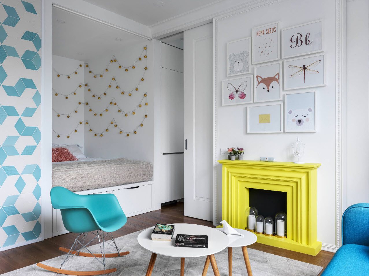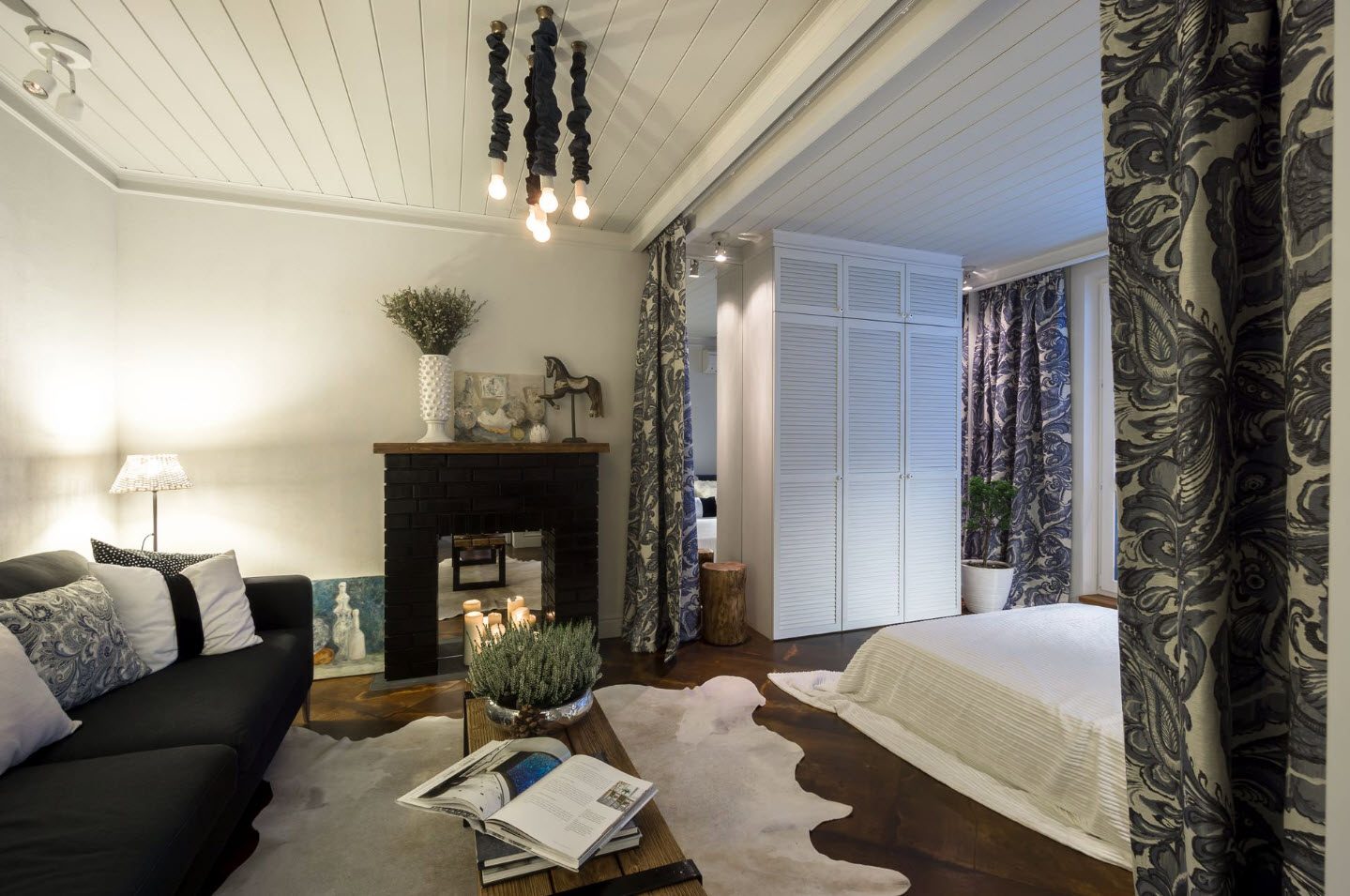 Вот такой вот необычный способ разделить гостиную и спальню