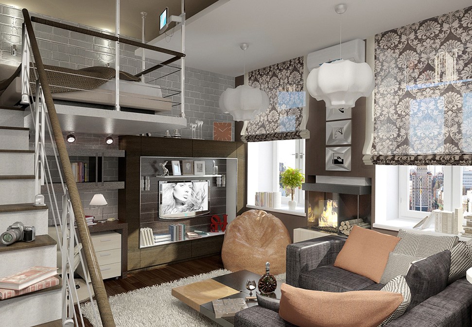 Небольшая гостиная с кровать-чердаком
