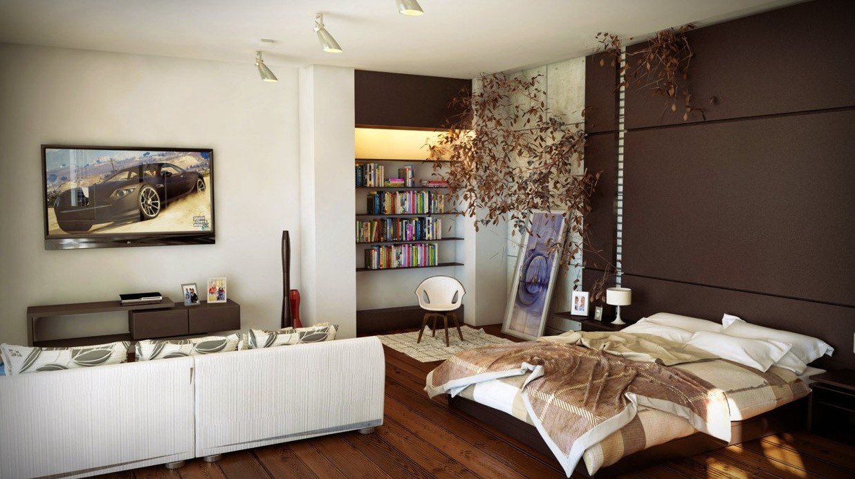 Если гостиная обладает достаточно большой площадью, то вам повезло. В этом случае можно организовать полноценную гостиную и спальню. Для этого вам нужно будет разделить помещение на две основные зоны: