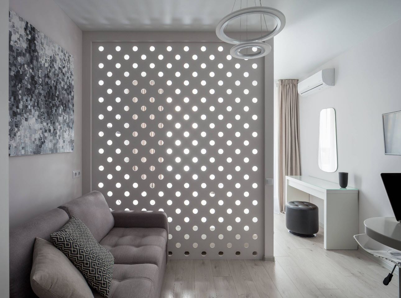 Самым простым и быстрым способом зонирования служит установка перегородки. Они бывают нескольких видов: