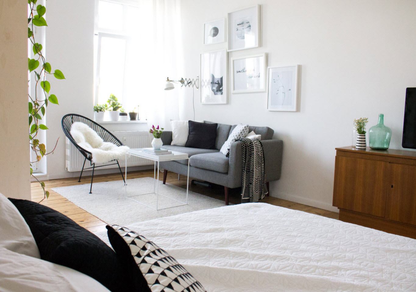 Интерьер спальни-гостиной разной площади