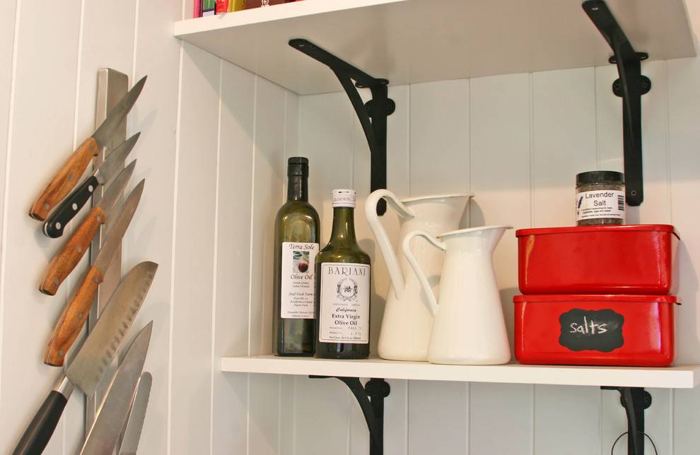 «Храните крупные предметы и грязные банки в шкафах, дверцы которых можно закрыть. Никто не хочет видеть ваши консервированные персики, пакетики и пакеты чипсов с солью и уксусом на витрине! — говорит Саймон Гланвилл в «Месте для всего». Вот что кухня кладовая для.