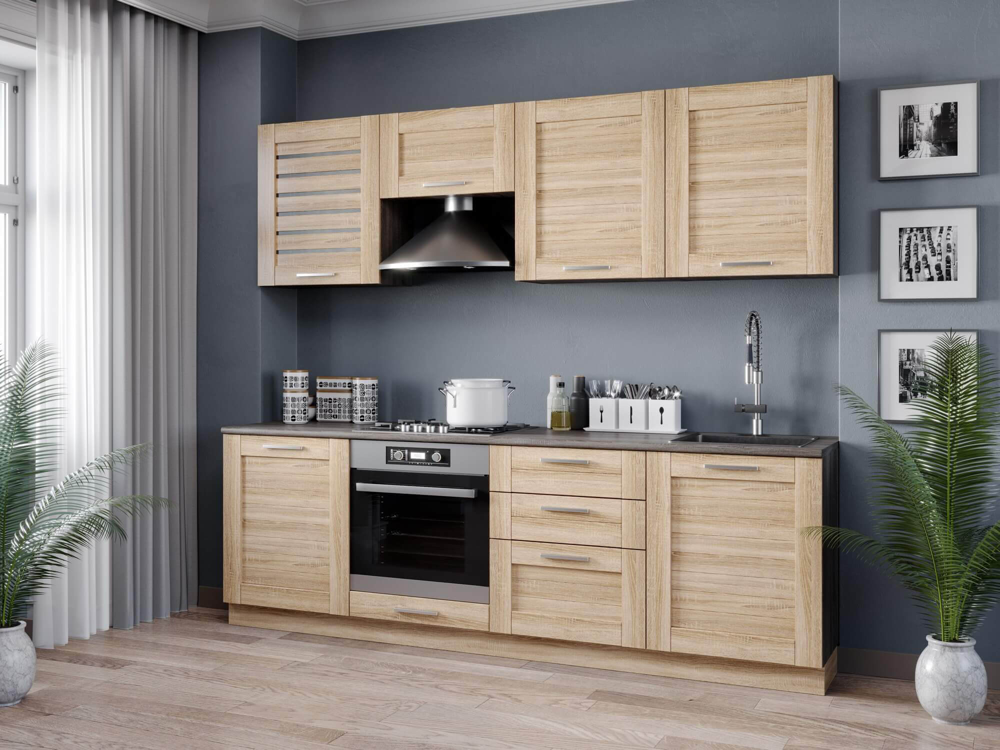 . Простая модель кухни из массива дерева будет дороже даже самой укомплектованной пластиковой кухни с отличной фурнитурой.
