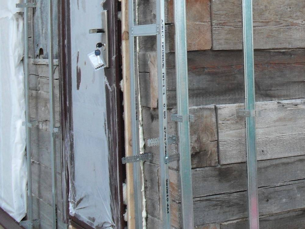- Установим J-рейки вокруг двери и окна.