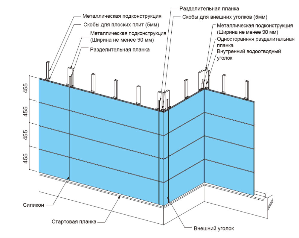 Монтаж фасадных панелей Konoshima осуществляется по такому же принципу. Зато в отличие от аналогов панели “Асахи” (At-Wall) не требуют расходов на дополнительные крепёжные элементы.