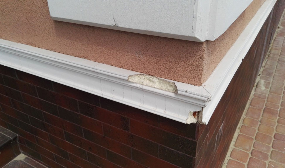 Декоры в зоне доступа людей могут повреждаться в процессе обыденной эксплуатации и во время незавершенного строительства. Удары, потертости и загрязнение часто случаются с декорами вокруг дверных проемов при неаккуратном заносе стройматериалов, оборудования, мебели. В такие моменты декоры желательно укрывать временной защитой.