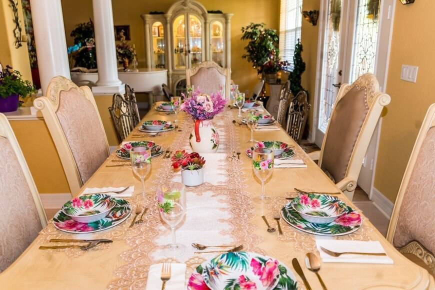 Даже самый удачный гарнитур и грамотно обставленная обеденная зона будут плохо смотреться без соответствующей отделки. Барокко — это один из немногих стилей, у которого имеются весьма строгие требования к отделке, где нельзя искать компромиссы.