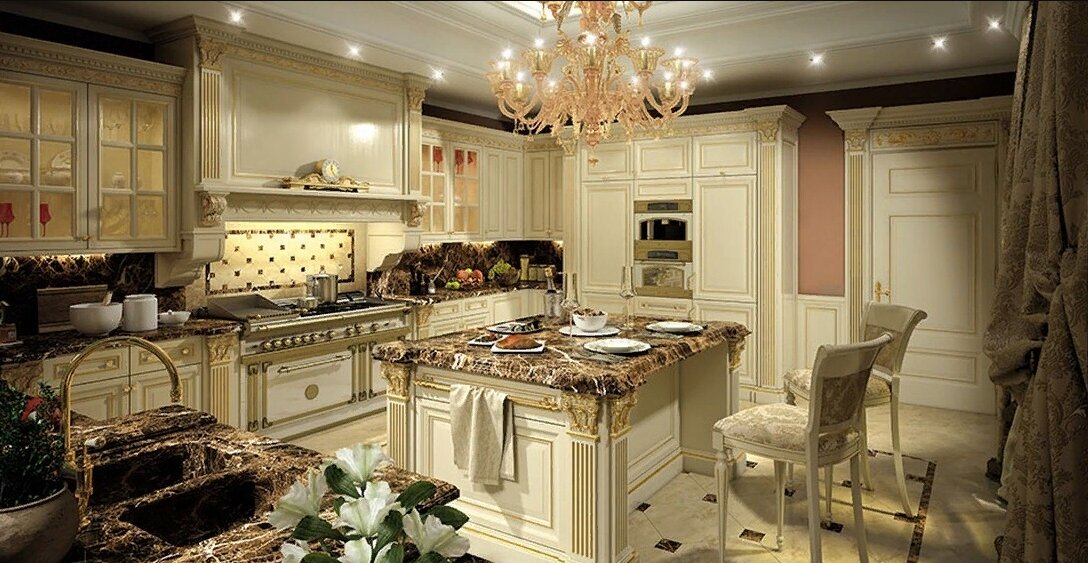 Кухня в стиле барокко 80 фото необычного дизайна в кухней