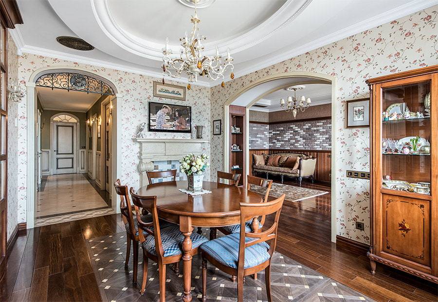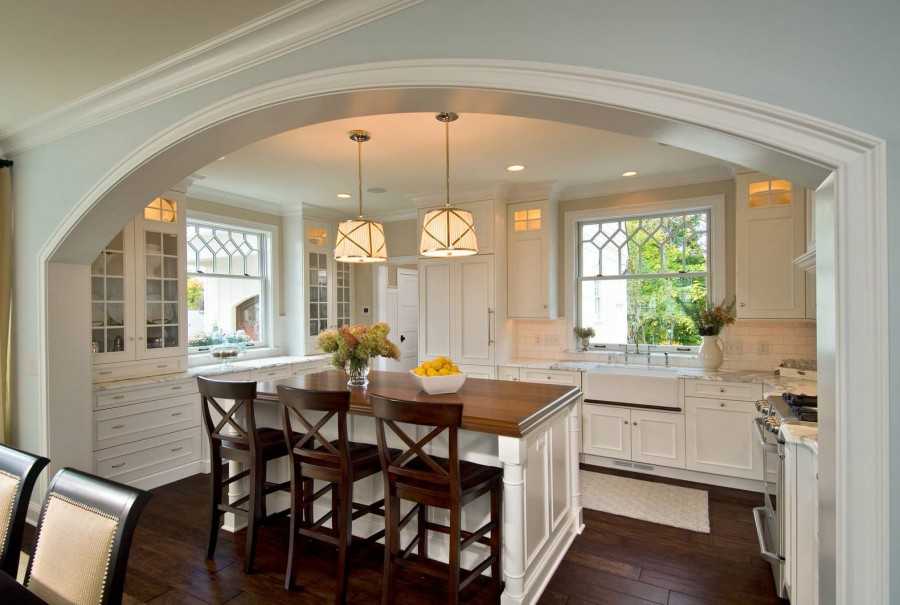 Классический тип обычно применяется в дизайне арки между кухней и гостиной. Ей также разделяют прихожую и кухню. Отличие арки в том, что она имеет радиус, равный расстоянию между боковыми стенками проема.