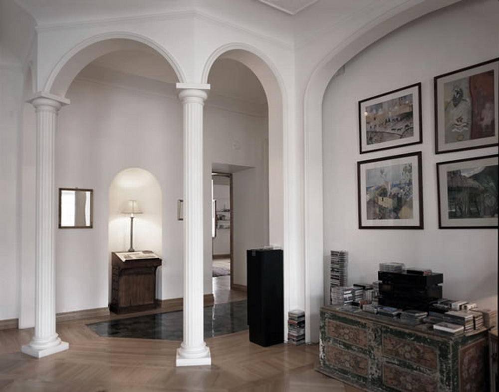 Декорирование арки колоннами будет уместно смотреться в интерьере просторной квартиры или загородного дома. Форма колон повторяет общий стиль в интерьере и может быть дополнена декоративными элементами, например лепнинами.