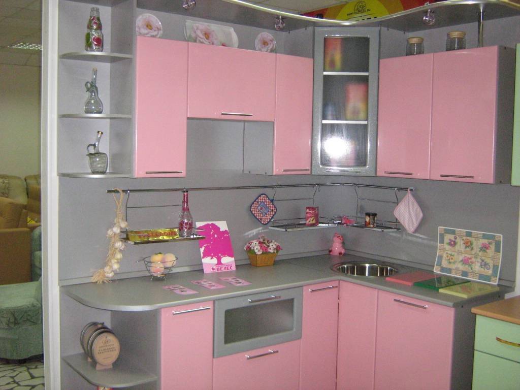 Изготовлены они могут быть из самых разных материалов: пластика, МДФ, ДСП, массива дерева. В зависимости от стиля интерьера кухни, можно использовать как матовые, так и глянцевые фактуры. Главное, правильно сочетать между собой розовые и белые оттенки, чтобы кухня выглядела элегантно и не вызывала у гостей и домочадцев чувства диссонанса.