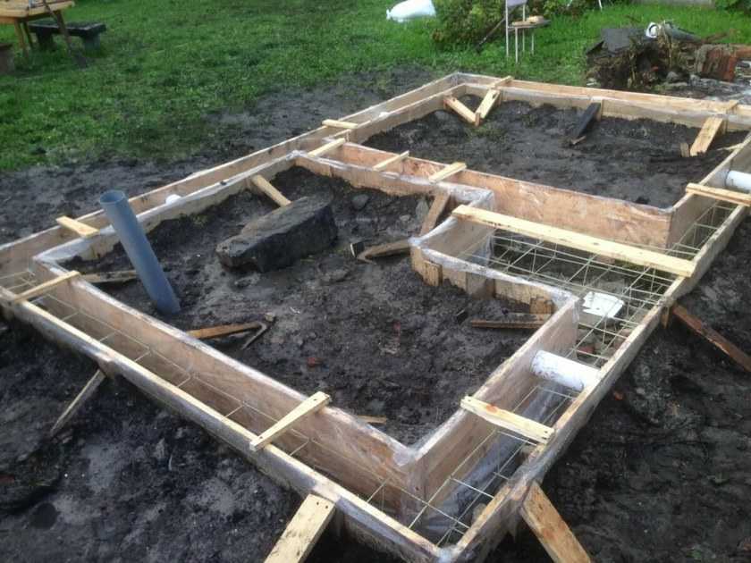 Особенно важно обвязать углы стыковки арматуры. Затем заливают фундамент, предварительно выполнив укладку канализационных труб и вентиляционных каналов