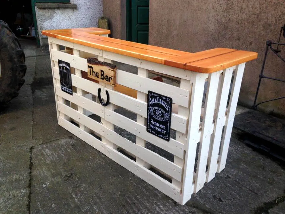 Поддоны – еще один доступный и распространенный вариант материала, с которым просто работать. Какую только мебель из поддонов не изготавливают – стулья, кровати, диваны, столы, но барные стойки занимают особое место. Для их создания подготовьте: