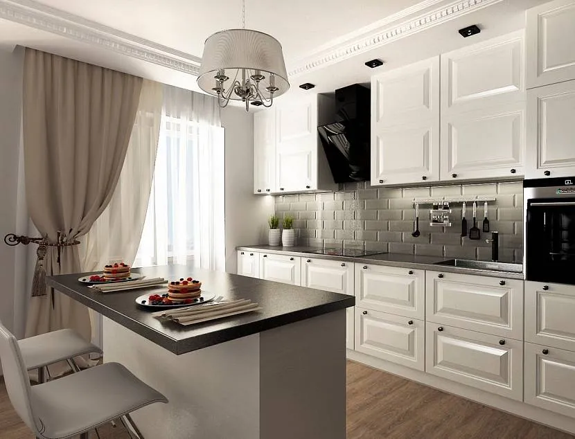 Оформив кухню в бело-серых тонах можно получить сдержанный, но при этом элегантный интерьер