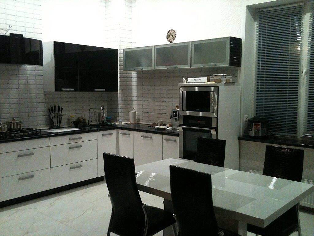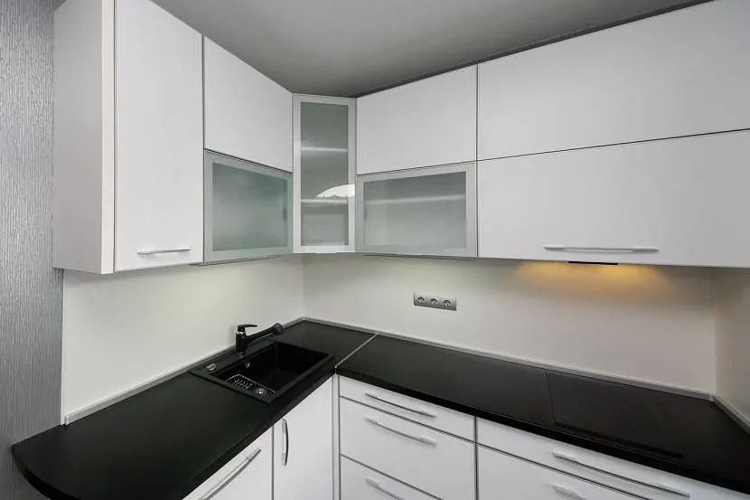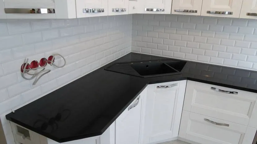 Рассмотрим достоинства и недостатки белой кухни с черной столешницей.