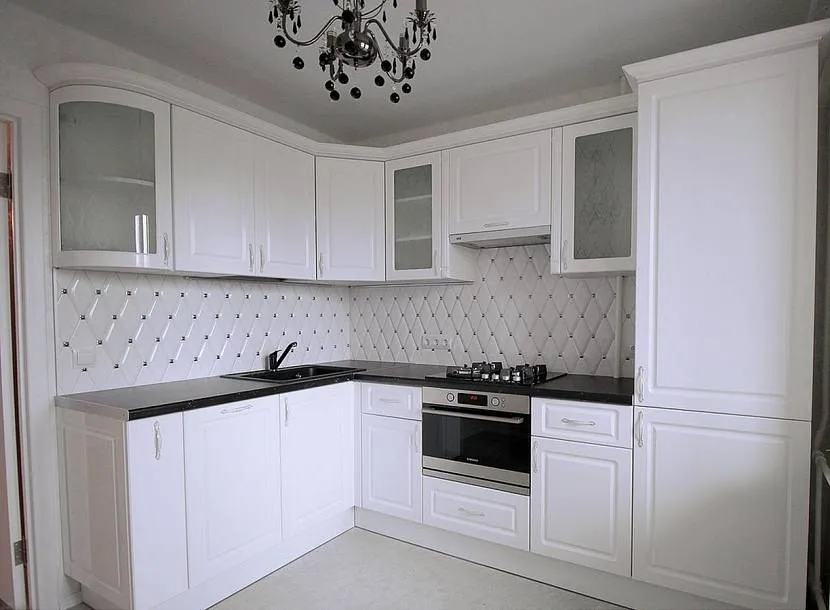 Выбор конфигурации кухни с белыми фасадами зависит от размера помещения и планировки.