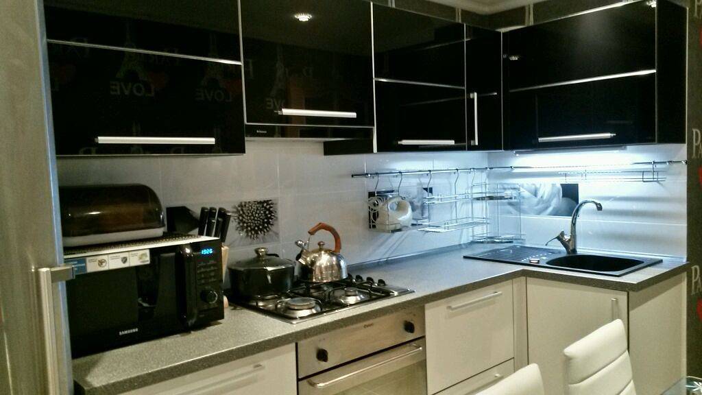 - Универсальность. При оформлении кухни в белом и черном цвете сложно ошибиться в сочетаниях, поэтому легко избежать «колористических» ошибок.