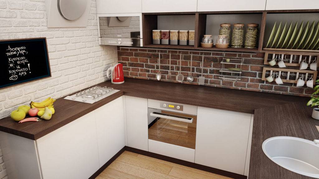 На кухне в стиле лофт он может иметь кирпичную фактуру и оставаться белым. Для кухни в стиле хай-тек идеально впишется фартук из нержавеющей стали с металлическим блеском.