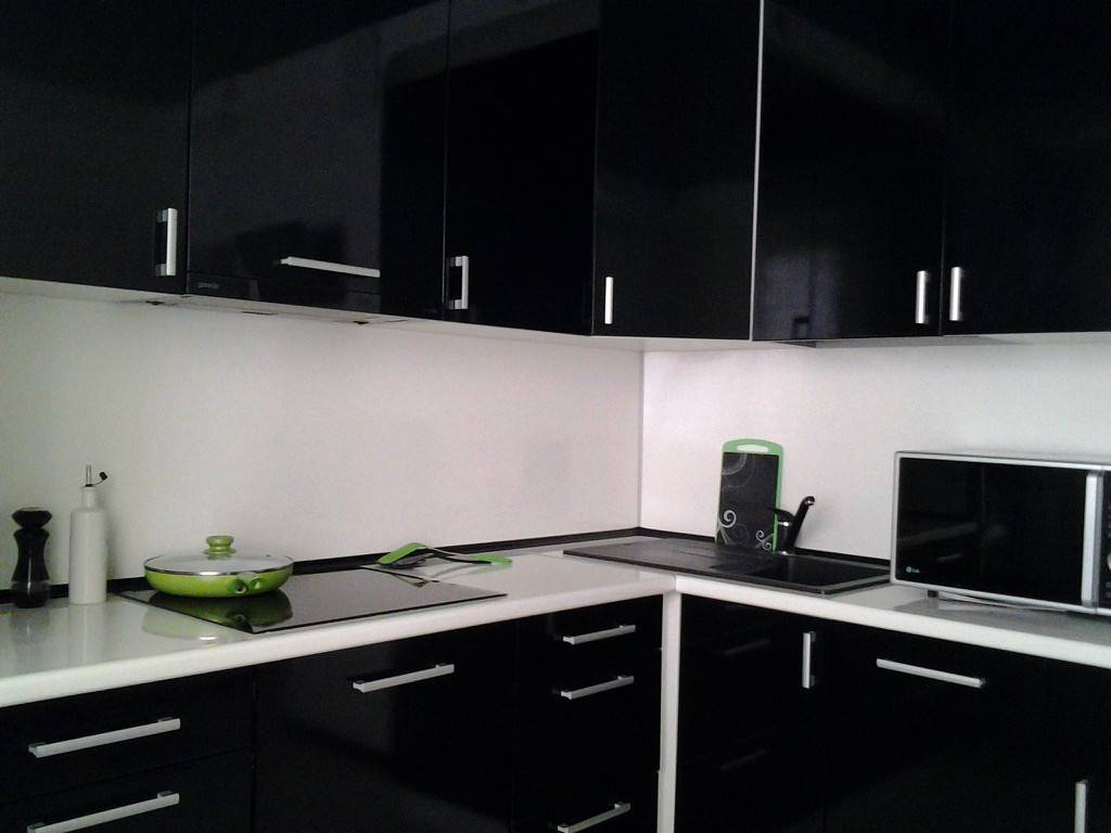 Фартуку на черно-белой кухне отводится важная роль. Он играет роль разграничителя между верхом кухни и низом или может являться цветовым акцентом. На кухне с белыми стенами и черным гарнитуром фартук может быть глубокого черного цвета и контрастировать со светлой столешницей.